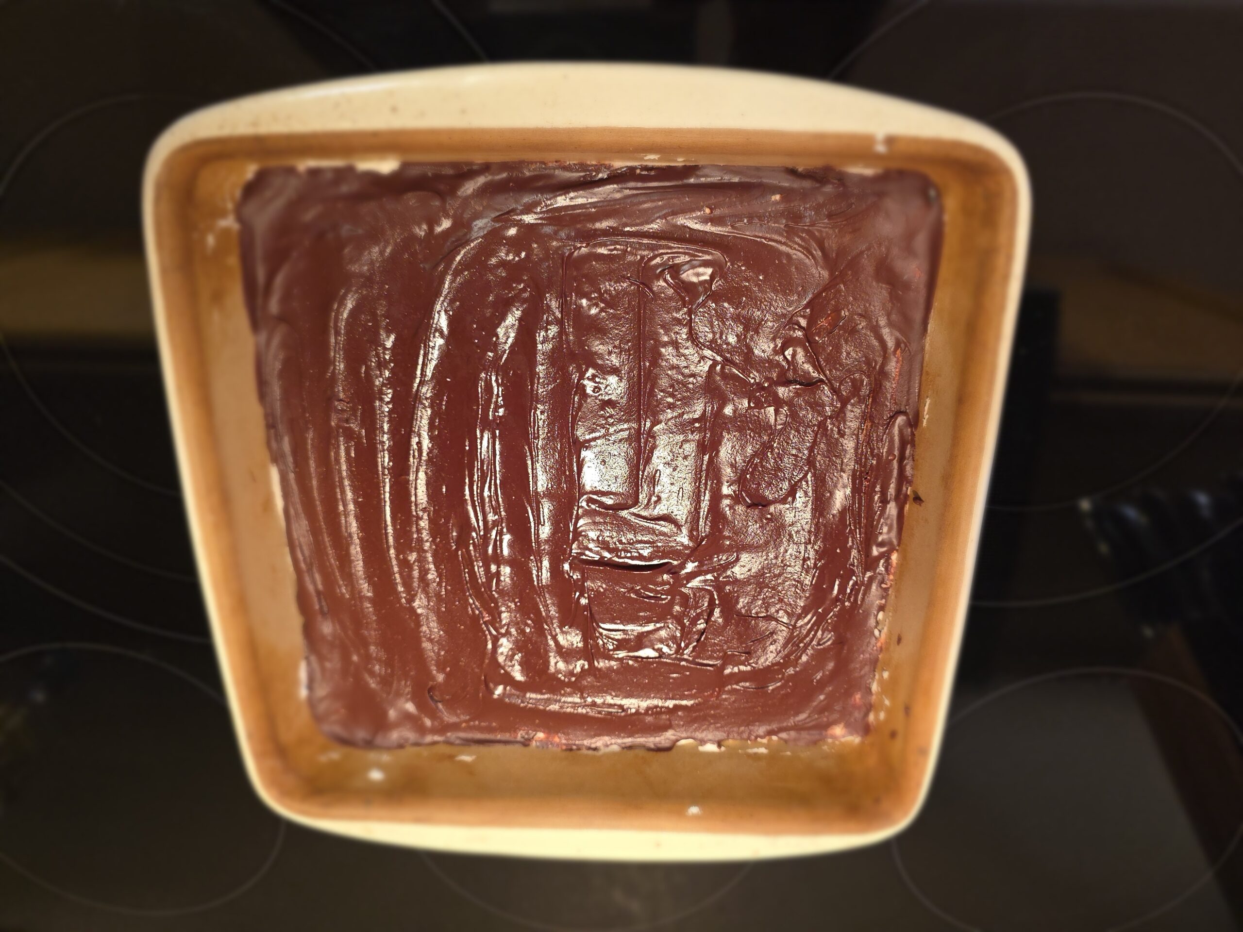 2. Spread evenly over mixture in 9x9 pan, then refrigerate